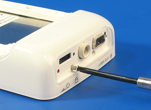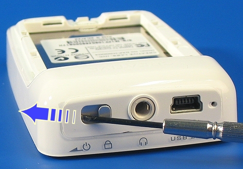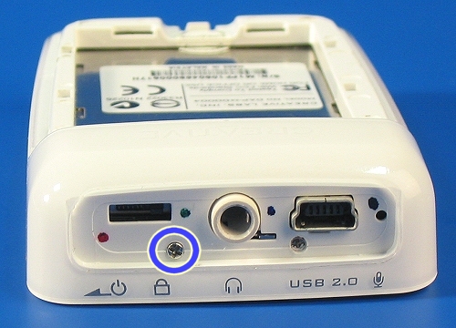 Removing the main body from the safety of its plastic housing is a two-step procedure. The first step involves the unscrewing of a tiny screw hidden from sight underneath a plastic fixture glued at the crown of the Zen Micro. This piece has to be removed before we can move forward and to do that, we'll need to set the player on Hold mode.